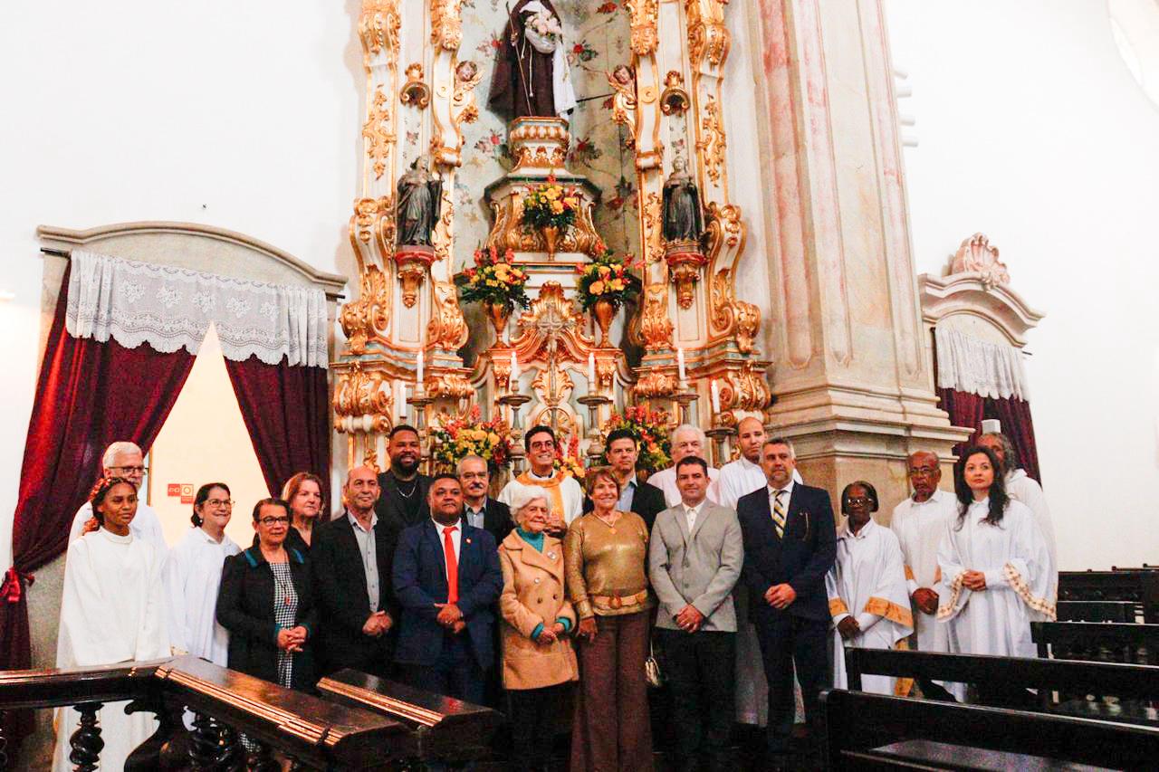 A solenidade foi precedida por uma missa solene na Igreja São Francisco de Assis, que ocorreu às 10h, em honra à padroeira da Câmara, Santa Isabel de Aragão, e em memória ao mestre José Pereira Arouca. A missa foi presidida pelo padre Geraldo Dias Buziani, que será homenageado pela Câmara Municipal com o título de Cidadania Honorária na próxima sexta-feira, dia 11 de julho, junto a agraciados com a medalha do Mérito Legislativo e da Menção Honrosa Capitão Mor Pedro Frazão de Brito.