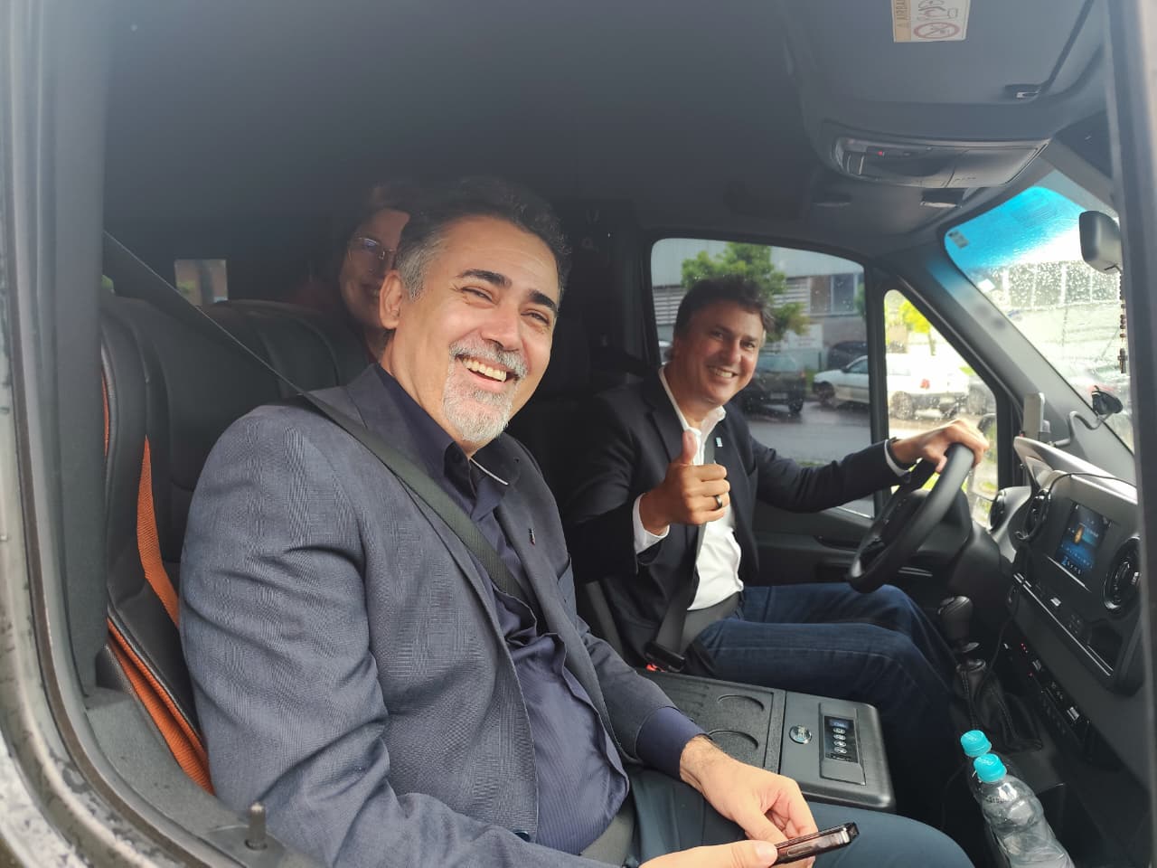 Uai, esse trem tá pra começar!? Aí estaciono, converso com uma leitora e desço pra perto da comitiva, que já se preparava para arrancar! Foi quando aproximei do vidro do passageiro e em mimica, mimica mesmo, perguntei se o evento tinha acabado? Foi quando o vidro baixou, o passageiro era o reitor! Advinha quem era o motorista? Duvido que alguém adivinhasse sem ver a foto!