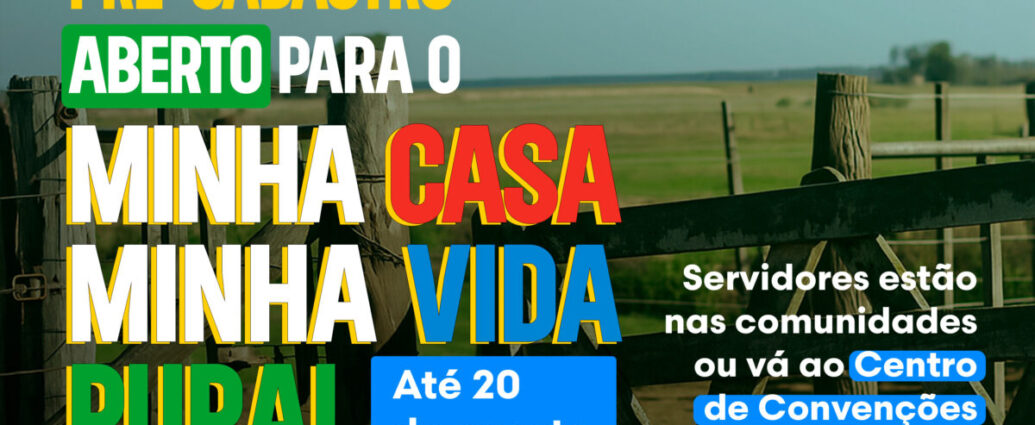 Nos dias 18 e 19 de agosto, servidores estão visitando as comunidades rurais, de casa em casa, para realizar o pré-cadastramento. Além disso, o atendimento também será feito até a próxima quarta-feira (20), nas Secretarias de Desenvolvimento Rural e de Habitação e Zeladoria, ambas localizadas no Centro de Convenções. Para se cadastrar, é necessário apenas apresentar os documentos de identificação: RG e CPF.