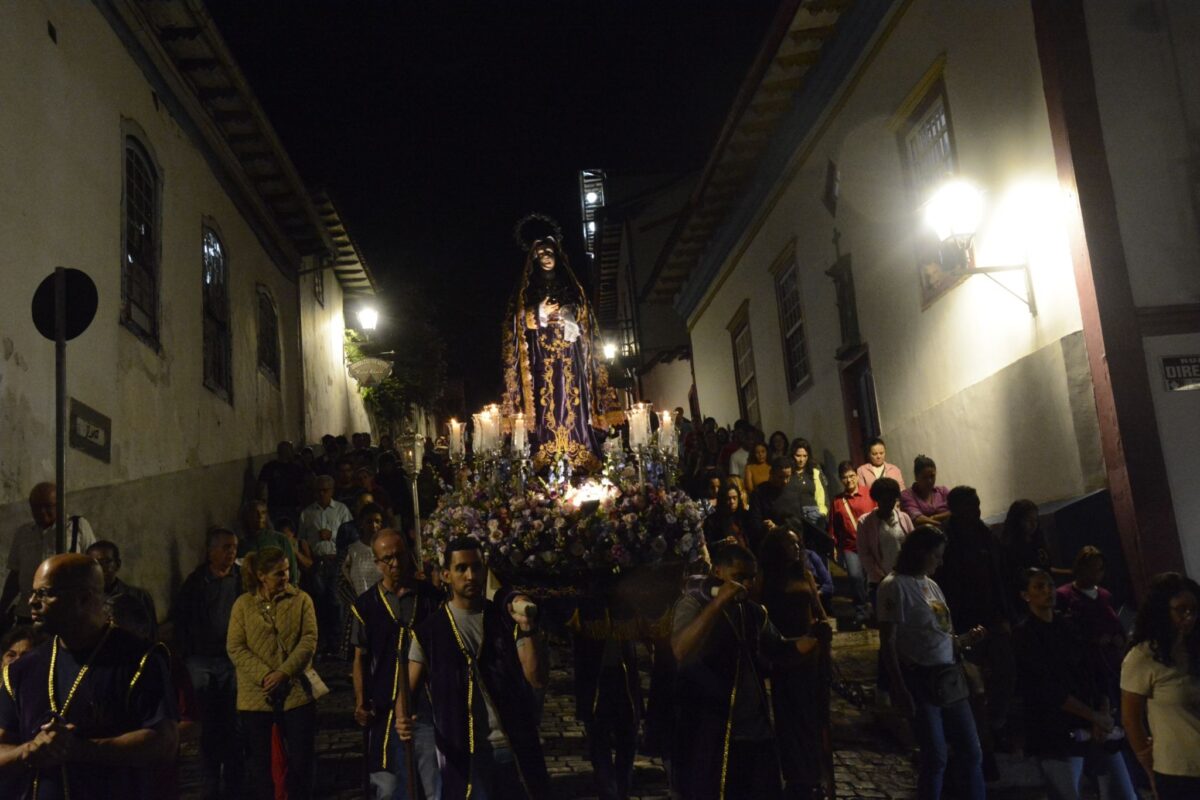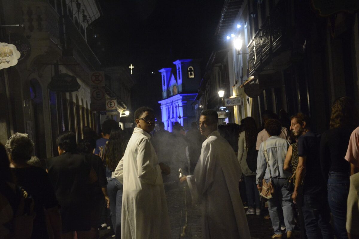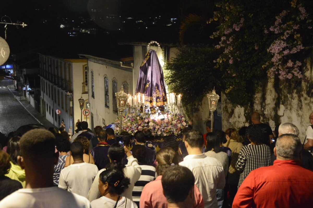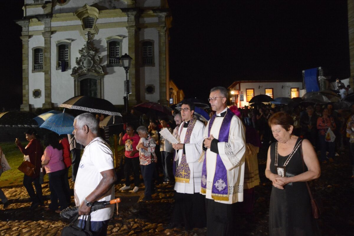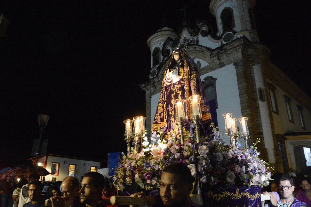 A Semana Santa continua em Mariana, chegando a seus últimos dias onde acontecem as celebrações mais emblemáticas, como a Procissão Penitencial dos Fogaréus, realizada na quinta-feira de hoje (02/04) e as celebrações do tríduo pascal, com a Sexta-Feira da Paixão (03/04), Sábado de Aleluia (04/04) e Domingo de Páscoa (05/04). A expectativa é que a presença do público siga se intensificando ao longo das celebrações mais importantes da Semana Santa.