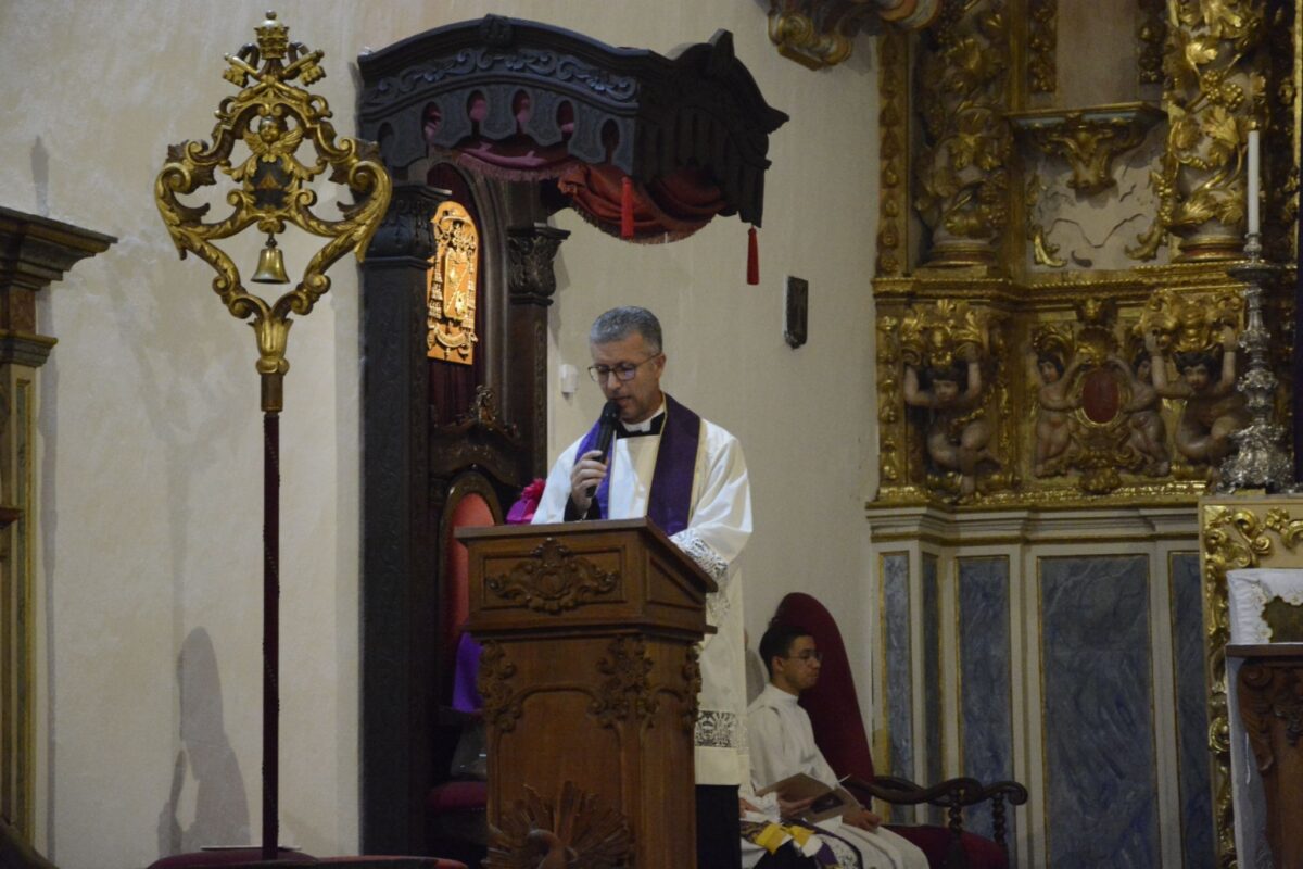 Padre Rodrigo Souza da Silva durante o Sermão da Soledade | Créditos: Anahí Santos