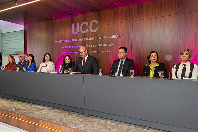 Compuseram a mesa de abertura do evento: a procuradora-geral de Justiça Adjunta Jurídica, Reyvani Jabour Ribeiro; a subcorregedora-geral do MPMG, Márcia Pinheiro de Oliveira Teixeira; o ouvidor do MPMG, Rolando Carabolante; a ouvidora-geral do Estado de Minas Gerais, Gabriela Câmara Siqueira; o conselheiro em exercício do Tribunal de Contas do Estado de Minas Gerais, Adonias Fernandes Monteiro; o ouvidor do Tribunal Regional Eleitoral de Minas Gerais, Antônio Leite de Pádua; a ouvidora da Mulher do Tribunal Regional do Trabalho da 3ª Região, desembargadora Maria Cristina Diniz Caixeta; a vereadora Professora Marli; e a diretora do Centro de Estudos e Aperfeiçoamento Funcional (Ceaf), Cássia Virgínia Serra Teixeira Gontijo.