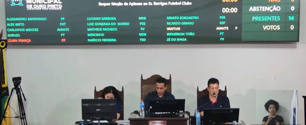 A 14ª reunião ordinária da Câmara Municipal de Ouro Preto, realizada na última terça-feira (24) foi marcada por debates sobre problemas de infraestrutura urbana, questionamentos na área da educação infantil, valorização de trabalhadores e um intenso embate entre vereadores envolvendo intervenções em uma praça no bairro Saramenha. A sessão também trouxe discussões sobre políticas públicas e demandas recorrentes da população.