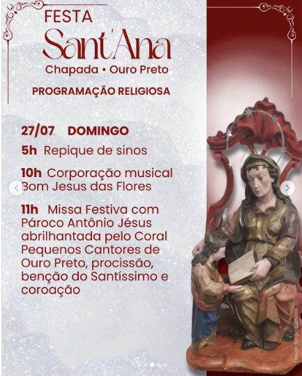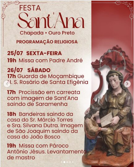 De 25/07/2025 à 27/07/2025 o subdistrit o da Chapada realiza a festa em homenagem à Sant’ana a padroeira da comunidade.